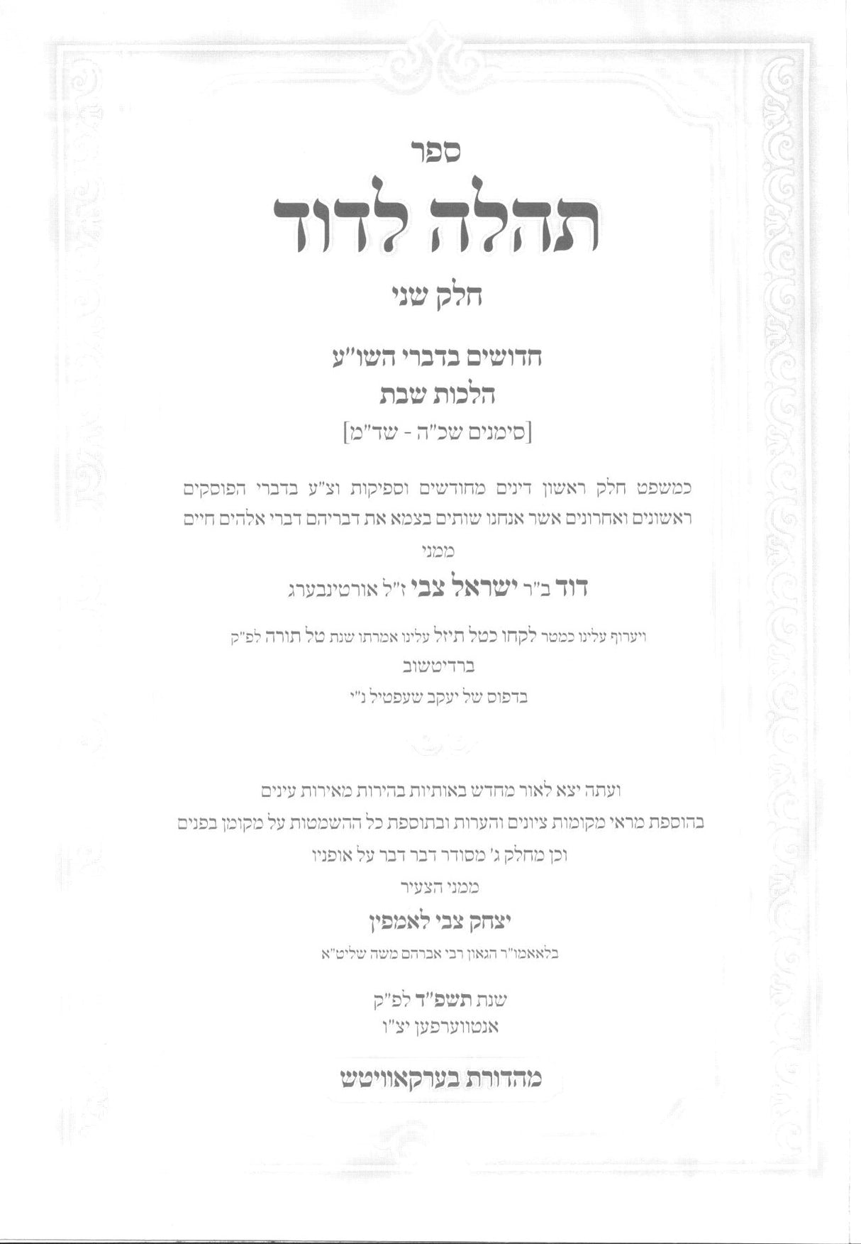 תהלה לדוד - הל' שבת סי' שכ"ה-שד"מ