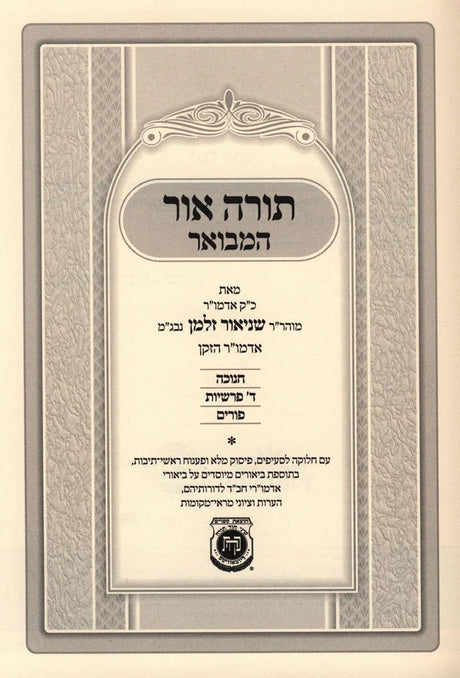 תורה אור המבואר חנוכה ארבע פרשיות פורים