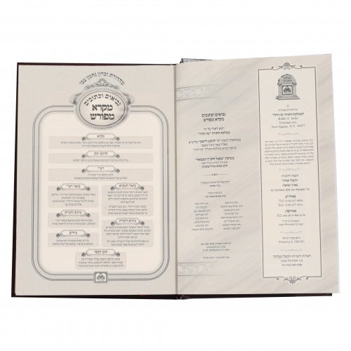 תוכן בספר - נושאי הפרקים, מועדי ומקומות ההתרחשות מסודרים בראש הספר
