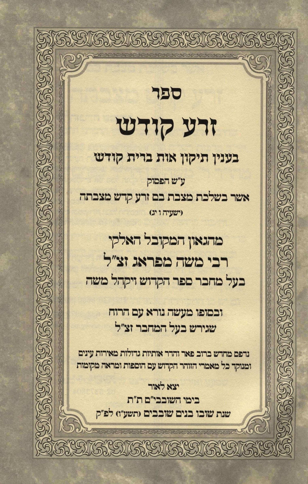 זרע קודש - תיקון היסוד להמקובל רבי משה מפראג זצ"ל