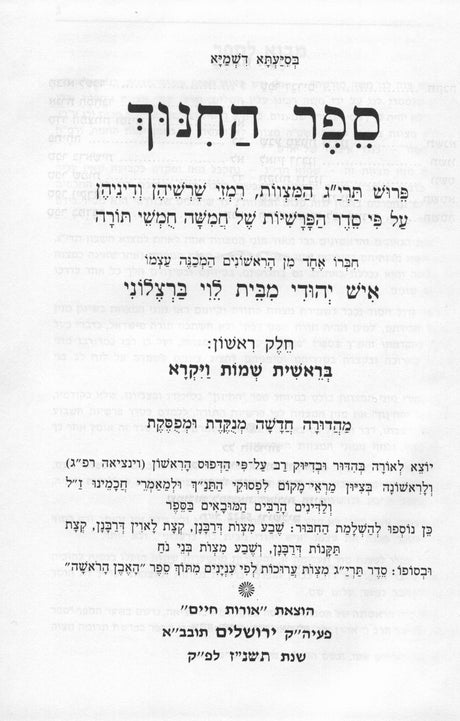(ספר החנוך מנוקד ב"כ - תרי"ג מצוות (מכון אורות חיים