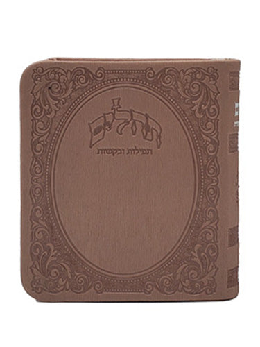 תהלים ותחינות עת רצון דגם פינות דמוי עור חום 13 ס"מ - שמחונים BROWEN