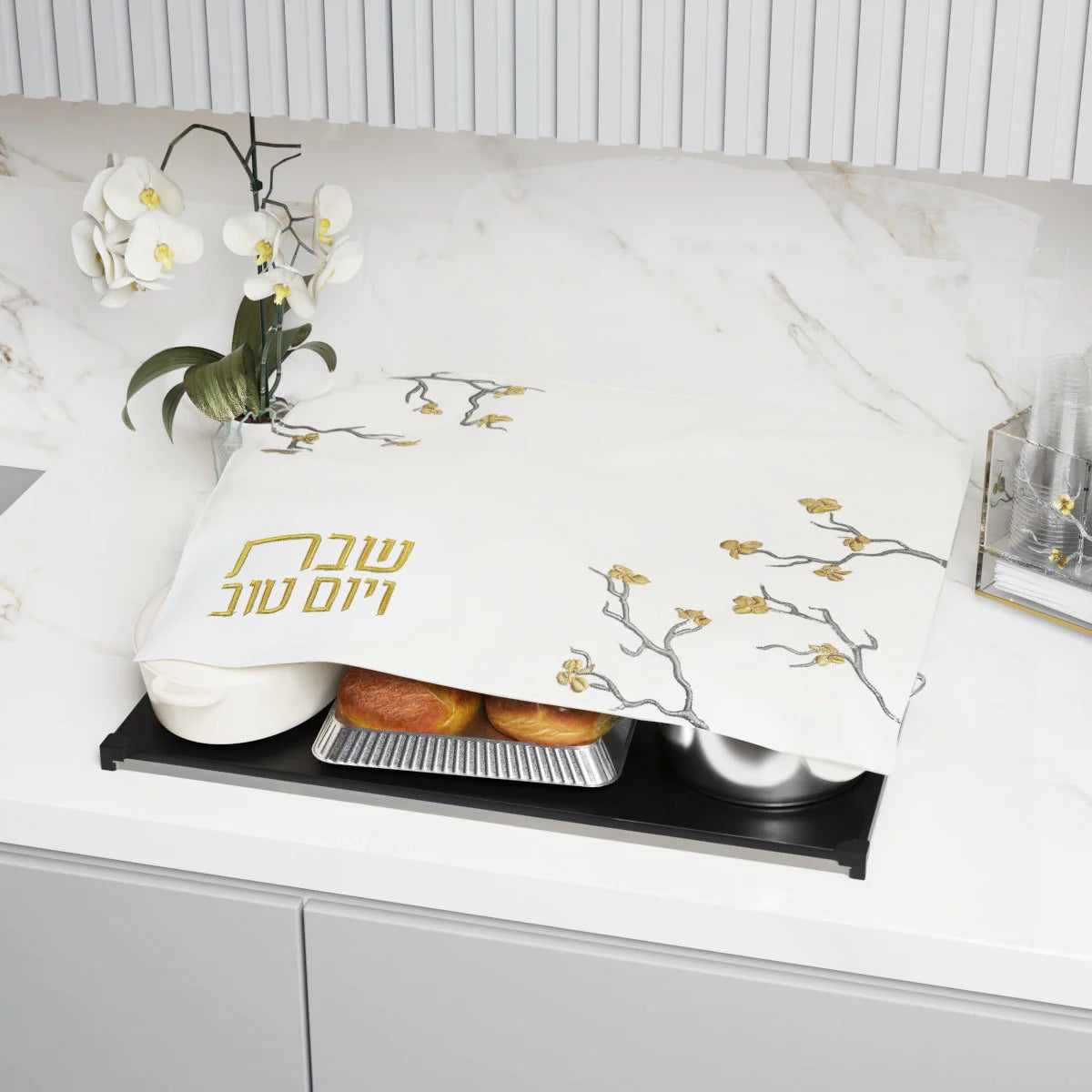 Elevate your Shabbos and Yom Tov with the Golden Branch Hot Plate Cover. Keep your food warm in style with its luxurious leather top and elegant embroidered designs. Perfect for any occasion. Please note, keep this hot plate cover away from direct heat. Full instructions included with the cover.