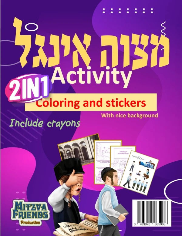 Mitzvah Yingel Kids' arts and crafts: two-in-one coloring and stickers include crayons all year round.