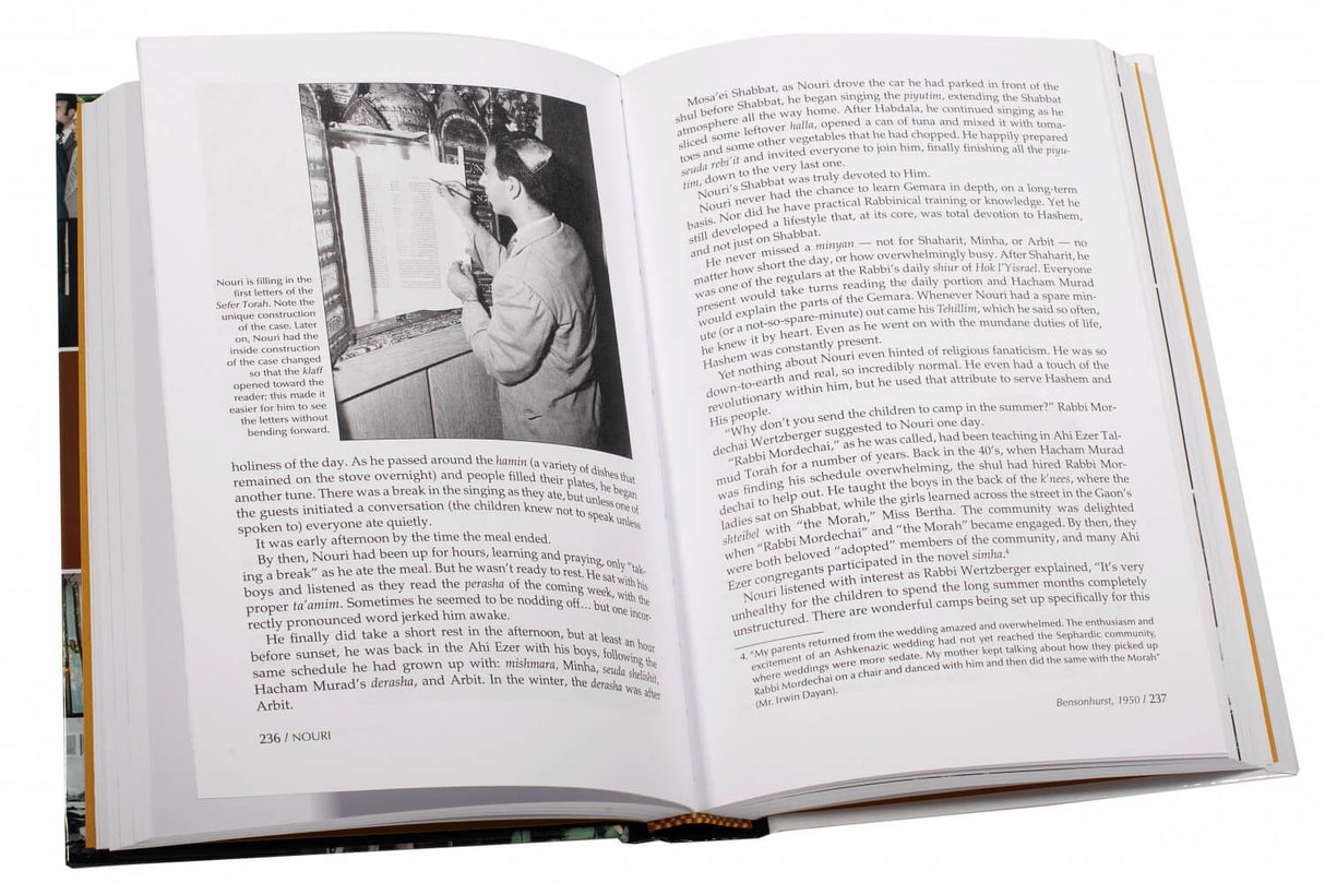 In the pages of this biography-that-reads-like-a-novel, you will meet famed gedolim: Hacham Murad, Nouri's mentor and eventually his father-in-law; Rav Avraham Kalmanowitz, the Mirrer Rosh Yeshiva, whose efforts and care for Klal Yisrael included the Sephardim of America; and Rav Yitzchok Hutner, who, together with Nouri's daughter and son-in-law, underwent a harrowing terrorist plane hijacking.