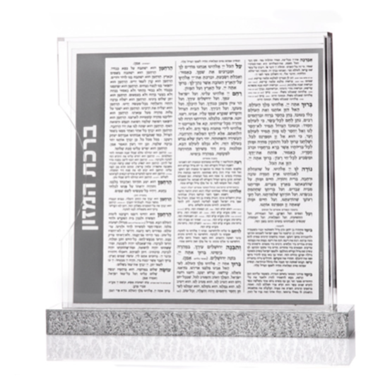 Lucite "Birkat Hamazon" Cards & Holder - Ashkenaz - Silver