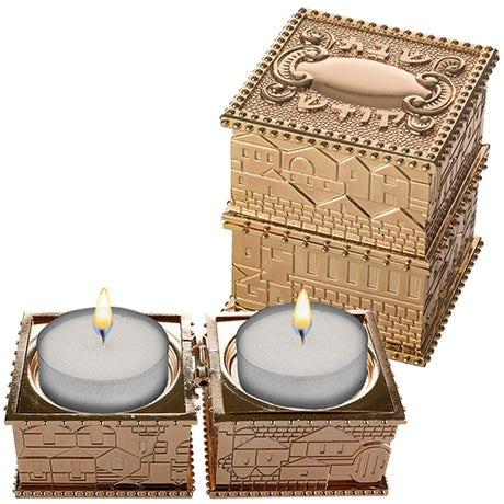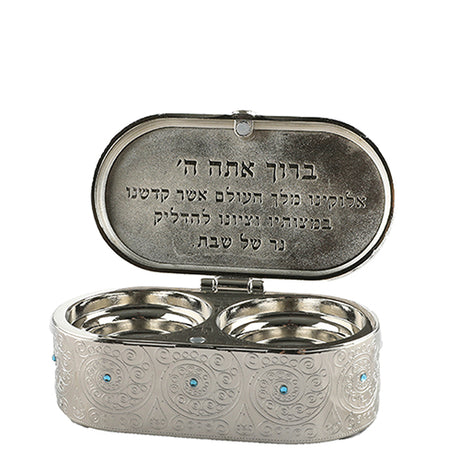 Nickel Travel Size Candlesticks In A Box With Cover 3x9 Cm Inlaid With Choshen Stones
