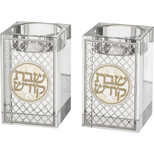 Crystal Candlesticks 8 cm with Metal Plaque- Ornaments