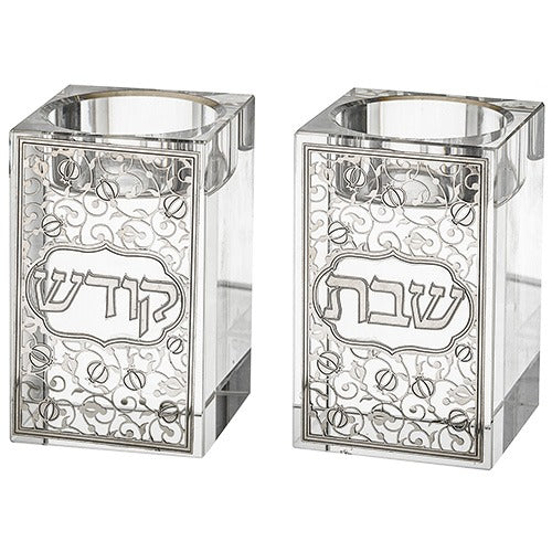 Crystal Candlesticks 8 cm with Metal Plaque- Pomegranate