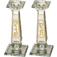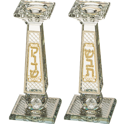 Pair of Crystal Elegant Candlesticks with Laser Cut Metal Plaque 20 cm