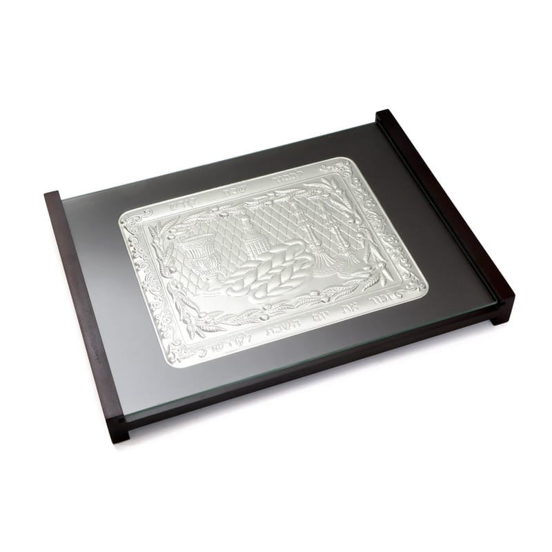 Challah Board - Brown Wood & Silver Plated & Glass Top