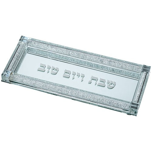 GLASS Candlestick TRAY WITH STONES 34X14 CM