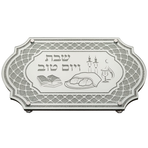 Oval Shape Glass Challah Tray Laid With Stones - "Shabbat Table" Decoration 4X45X28 cm is backordered and will ship as soon as it is back in stock.