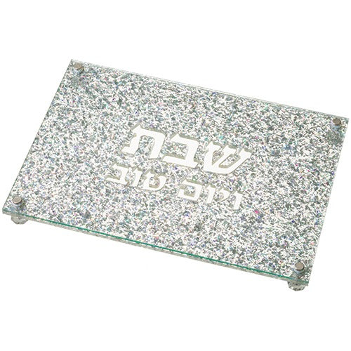 PERSPEX TRAY WITH SILVER GLITTER 38X26 CM
