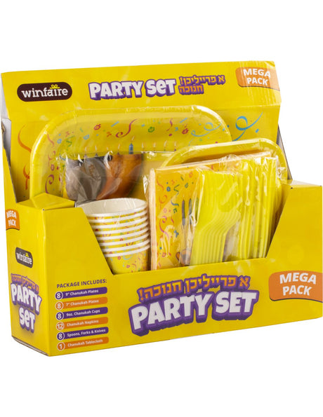 Chanukah Mega Family Paper Goods Set - Yiddish Design
