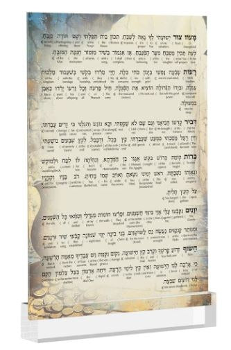 Lucite Chanukah Brachos Card Artscroll Interlinear Painted Artwork Jerusalem Jug Design with Stand