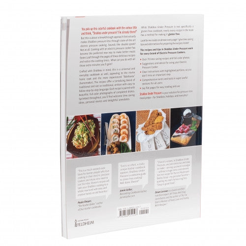 You pick up this colorful cookbook with the curious title and think, “Shabbos under pressure? I’m already there!” But this is about a breakthrough approach that actually makes Shabbos pressure-less through state-of-the-art electric pressure cooking. Sounds like double-speak? Not at all. Cooking with an electric pressure cooker has become the preferred new way to make better meals faster. Leaf through the pages of these delicious recipes and notice the cooking times. What can you do with all those extra minutes you’ll gain? Crafted with Shabbos in mind, this is a universal and everyday cookbook as well, appealing to the novice home cook and the more experienced “Balebusta” (homemaker). The recipes offer a tantalizing blend of traditional and not so traditional, written with easy to follow step-by-step language. Each recipe is paired with beautiful, full-color photographs of completed dishes. Sprinkled throughout, you’ll find welcome time saving ideas, personal stories and delightful anecdotes. While Shabbos Under Pressure is not specifically a gluten free cookbook, nearly every recipe in the book has a method for making it gluten free. The recipes and tips in Shabbos Under Pressure work for every brand of Electric Pressure Cookers. ▶ Over 70 time saving recipes and full-color photos ▶ Suggestions and advice for using your Electric Pressure Cooker ▶ Clear instructions with highlighted portions, so you don’t miss an important step ▶ Comprehensive terms and tools in super-useful sections for all users ▶ Lay-flat pages for easy reading and use Shabbos Under Pressure is your solution for pressure-less meal preps – for Shabbos, holidays, and everyday
