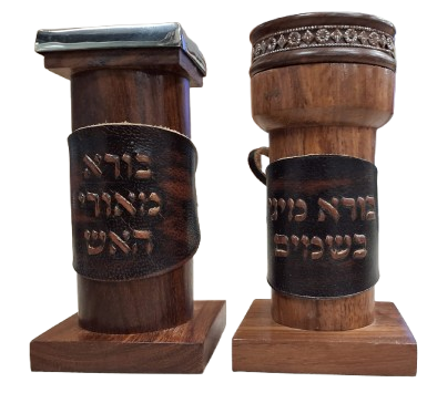 Leather & Wood Set Besomim Box - Havadalah Holder