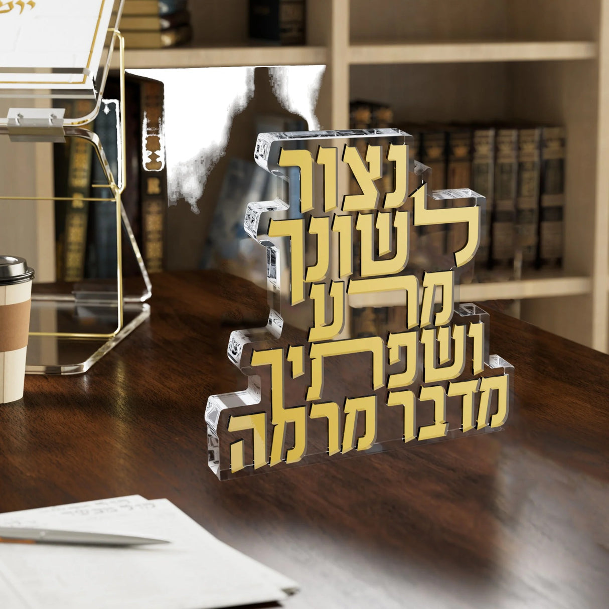 Never forget the important mitzvah of refraining from speaking loshon hora with the Loshon Hora Block. This elegant block serves as a constant reminder, perfect for the home or office. An exclusive addition to any space, it helps cultivate a mindful environment.