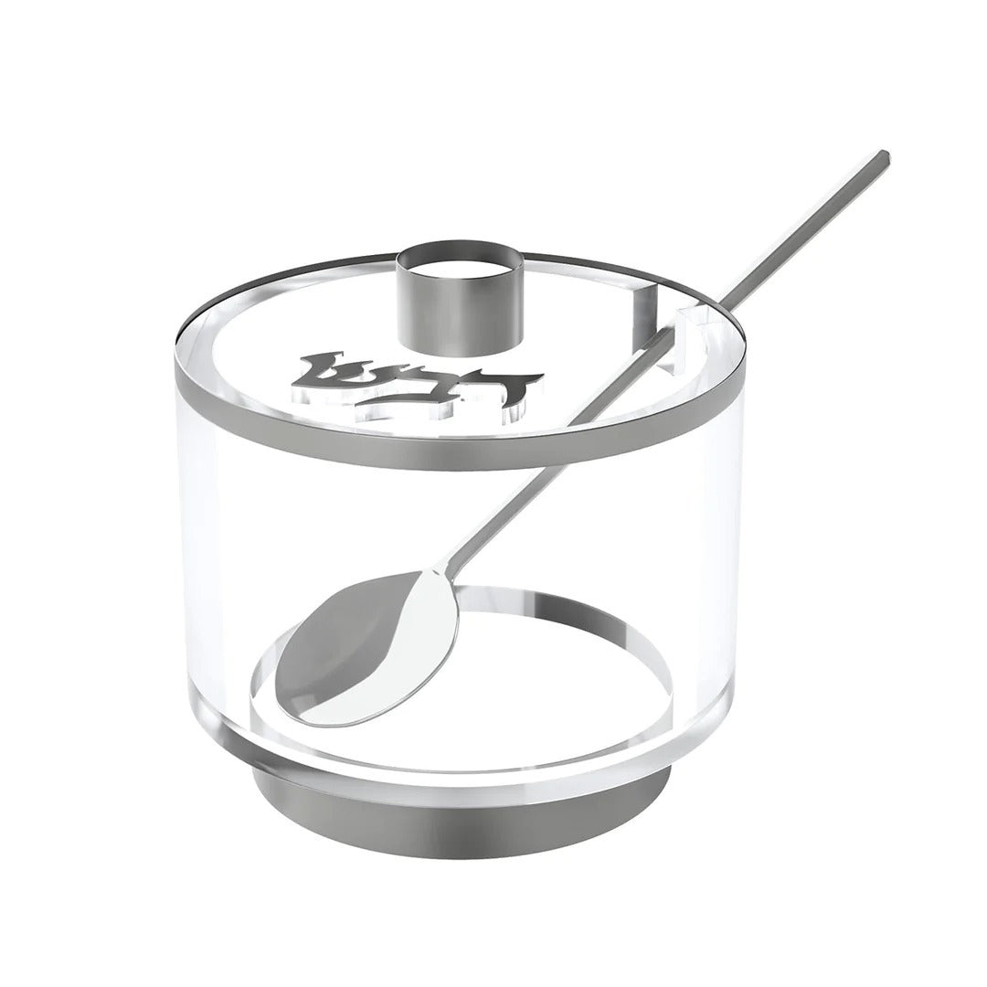 This striking Honey Dish is designed to be a luxurious centerpiece for your Rosh Hashana table. Its lavish silver accents and sturdy base will bring tasteful elegance and sophistication to your home.