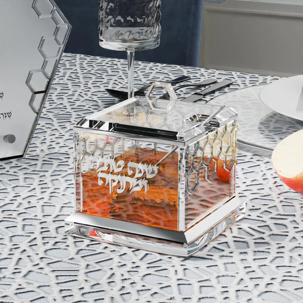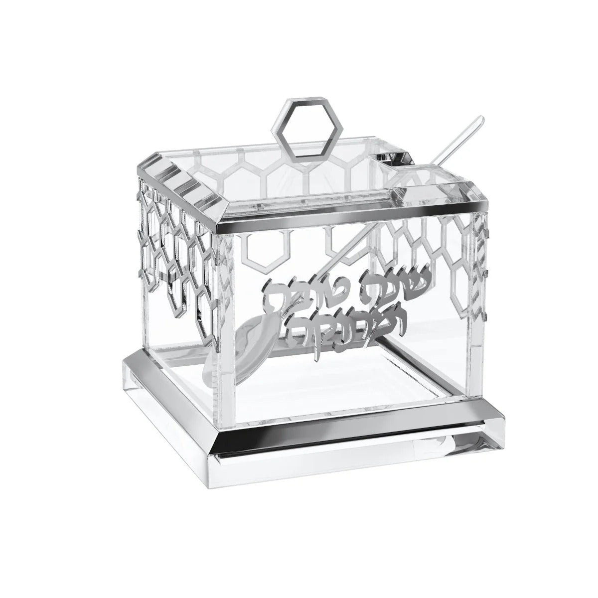 Introducing our exquisite Honeycomb Honey Dish, crafted with sophistication and featuring a stunning 3D raised lettering and honeycomb design. Elevate your Yom Tov experience with this tasteful and exclusive addition.