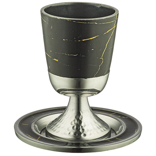 Aluminum Kiddush Cup 11 cm with Saucer - Marble contain 210ml / 7.1oz