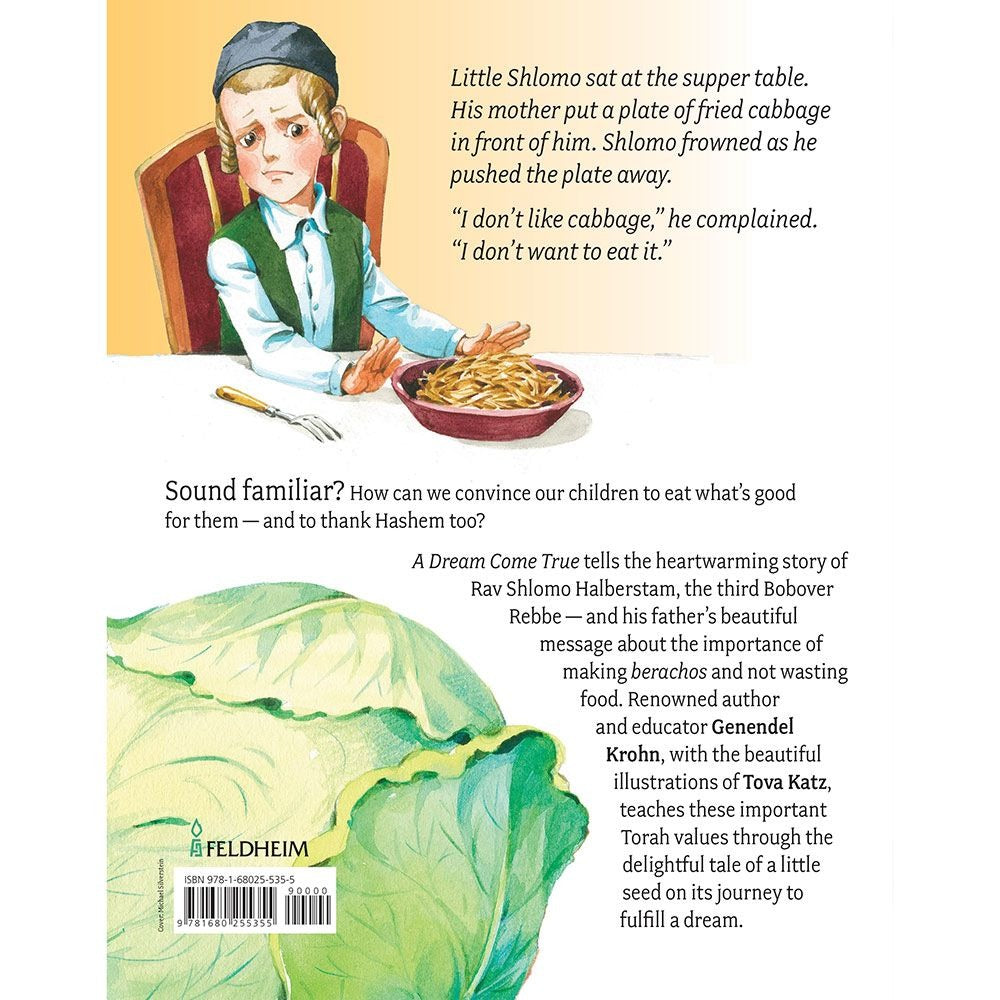 A Dream Come True tells the heartwarming story of Rav Shlomo Halberstam, the third Bobover Rebbe — and his father’s beautiful message about the importance of making berachos and not wasting food.