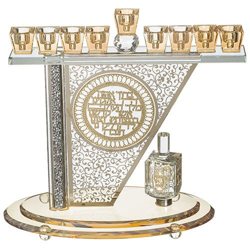 Crystal Menorah 28*27 cm with Metal Plaque and Stones