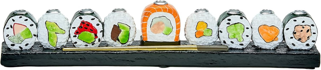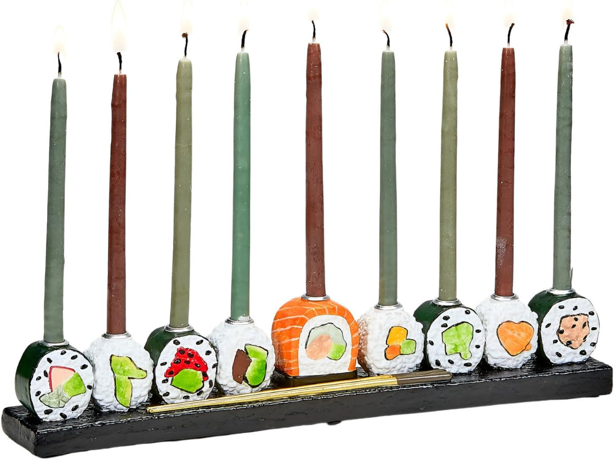- Allow for humor and creativity into your Hanukkah celebrations with the Sushi Menorah by Rite Lite. This whimsical and hand-painted resin menorah features a delightful sushi design, merging Jewish traditions with a touch of Japanese flair for a truly unique holiday experience.