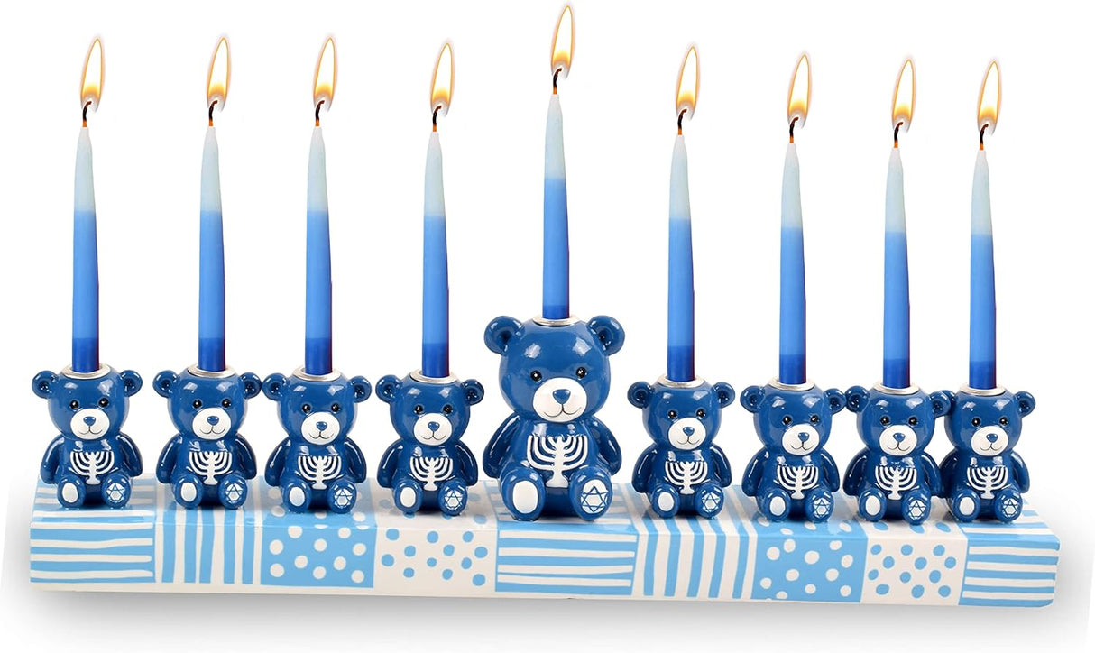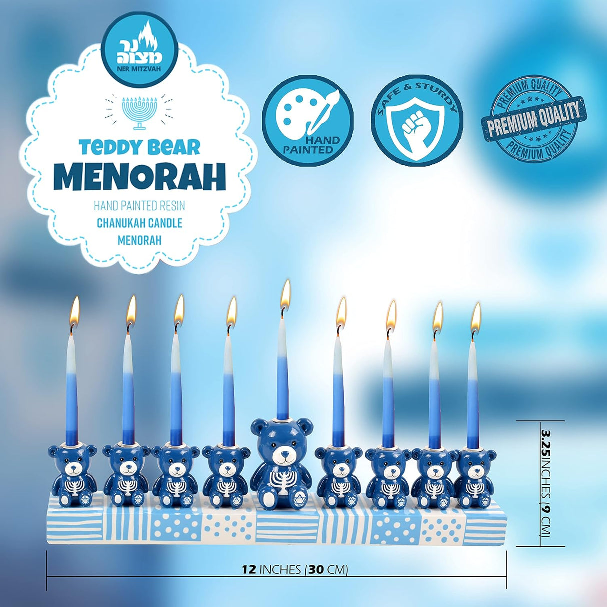 Resin Menorah - Teddy bear is backordered and will ship as soon as it is back in stock.