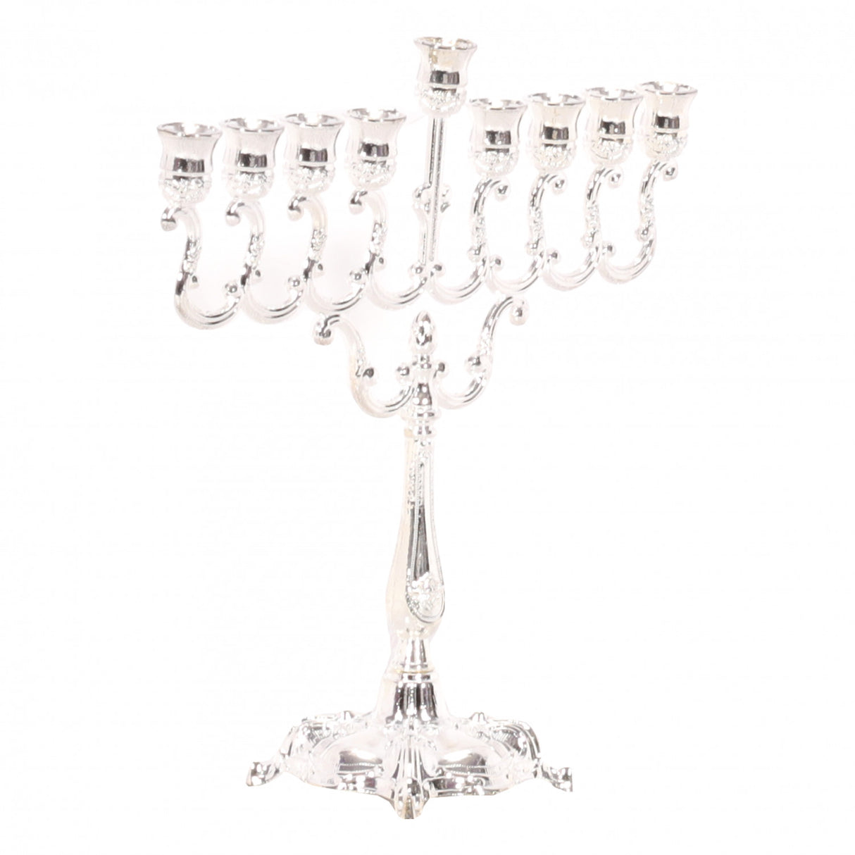 Silver plated candle menorah Size: Height 7.5" x Width 6.5"