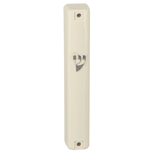 Plastic Mezuzah With Rubber Cork 15 Cm- Beige And Silver