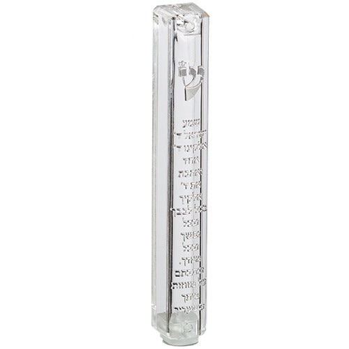 Plastic Mezuzah With Rubber Cork 12cm- Clear With Silver "shema Yisrael"