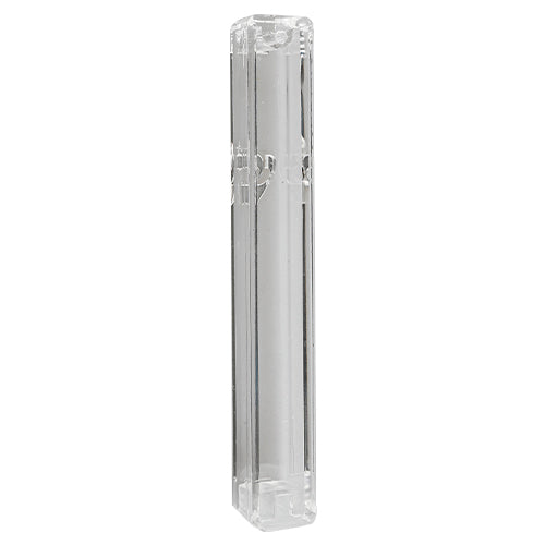 Plastic Transparent Mezuzah With Rubber Cork 20 Cm- With Silver Shin