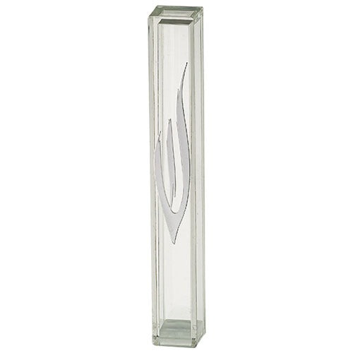 Transparent Plastic Mezuzah 15 cm - Silver SHIN with Rubber Cork