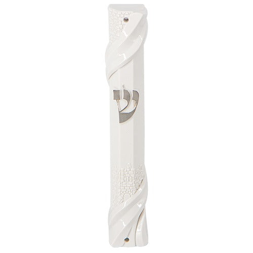 White Plastic Mezuzah 20 Cm With Rubber Cork - "jerusalem" Ornaments