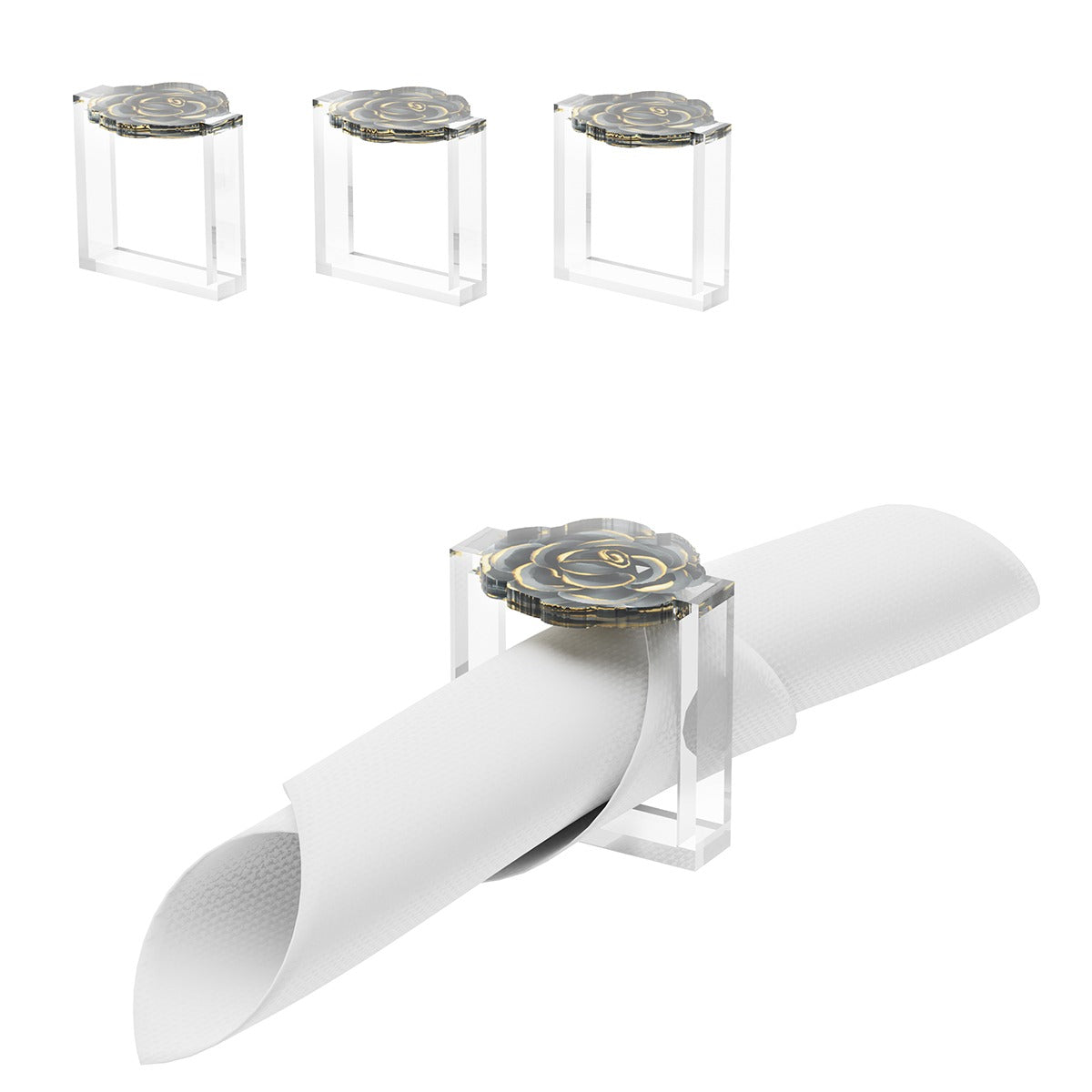 BLACK ROSE NAPKIN RINGS SET OF 4