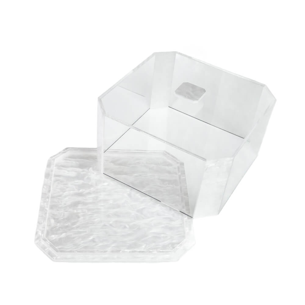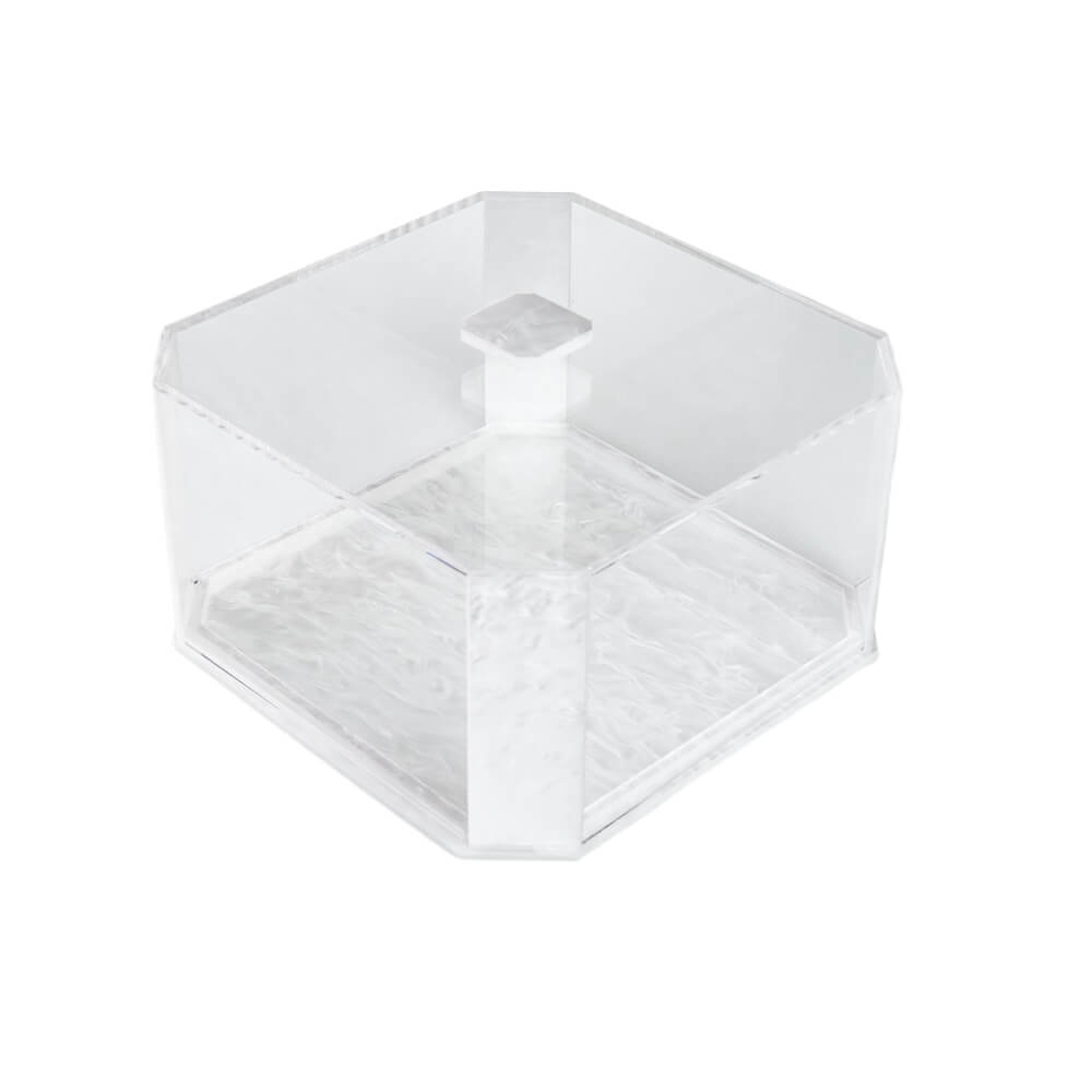 An exquisite and functional cake dish, perfect for any round cake. The clear acrylic magnetic lid not only displays your goodies to perfection, but also keeps it fresh and delicious.