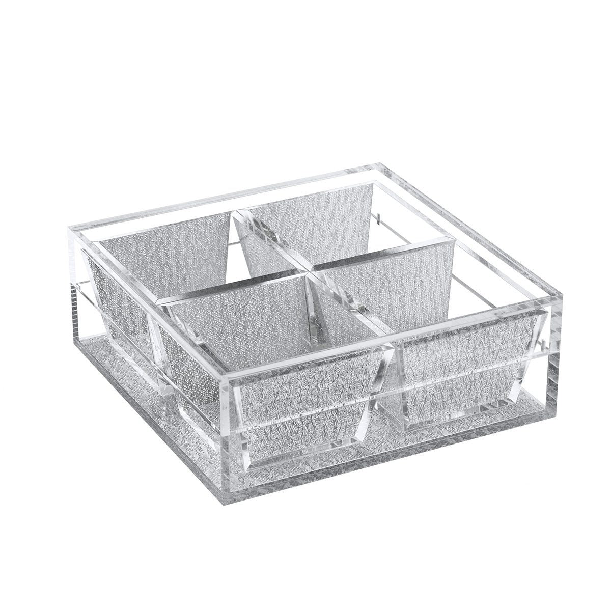 Dip Dish with Magnetic Lid, 4 Dishes - Silver