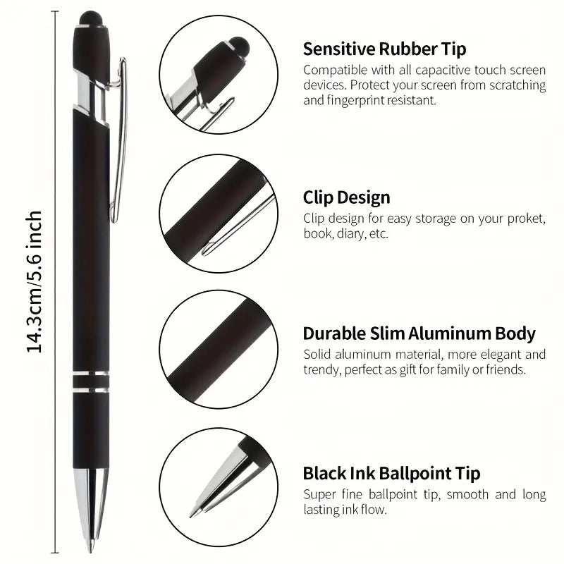 Engraved Stylus Metal Ballpoint Pens with Clip, Black