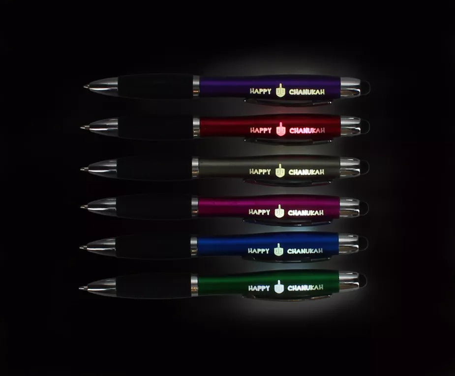 This Chanukah light up pen is a fun way to write and comes in multiple colours. Press the button at the top of the pen and watch as the pen lights up.