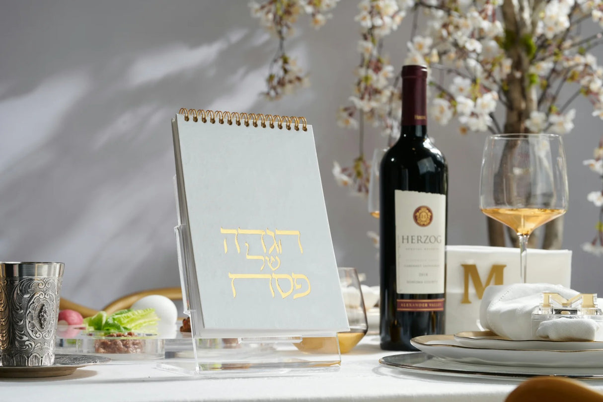 Like the standing Hagaddah, but upgraded. The sturdy lucite stand lends an aura of simple sophistication.