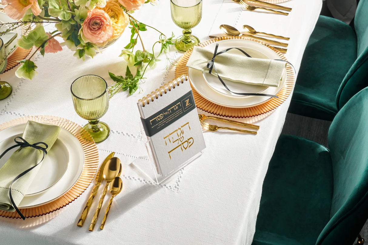 This splendid spiral-top hagaddah takes up less table space and is the perfect solution to Seder table clutter. It’s got a high-quality, sleek design, but still boasts an easy-to-read and easy-to-flip style. Concise English instructions will guide you through the Seder.
