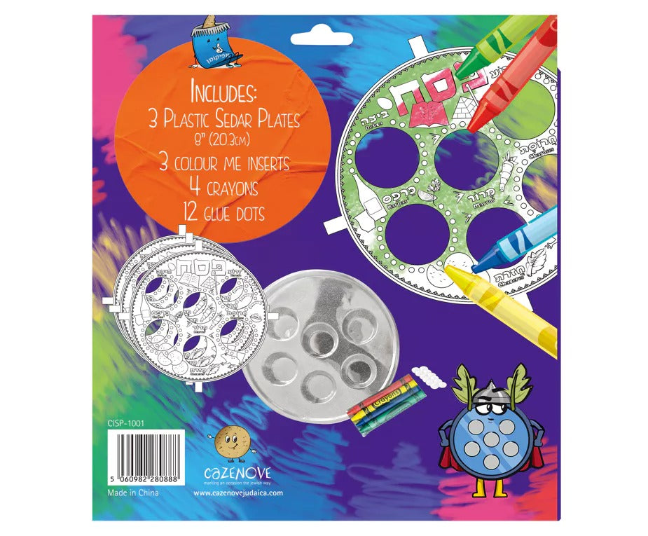 These Colour In Seder Plates are the perfect way to enable you to personalise your seder like never before! This DIY Seder Plate set comes with 3 Plastic Seder Plates and 3 ready to colour backgrounds. Unleash your child's creativity with the included crayons.