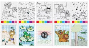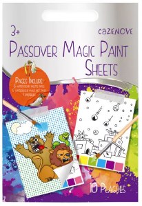 Time to get artistic with this Magic Pesach Painting Sheets! This set is perfect for introducing your little ones to Pesach. Just dip a brush into water touch one of the colored squares and then paint over the pictures. With 10 Pesach themed pictures to choose from, this painting set is bound to be a hit with your little budding artist! Great for doing alone or with friends.