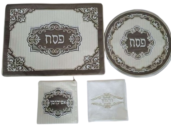 Leather Like 4 Pcs Passover Set: Pillow, Passover & Afikoman Covers With Towel