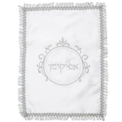 White Satin Passover Set With Silver Embroidery:passover And Afikoman Covers 46cm
