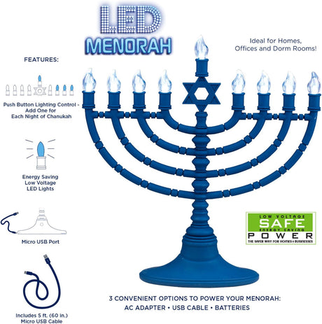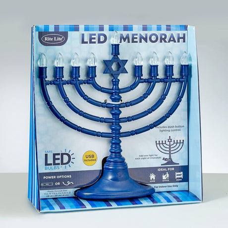Rite Lite Blue Plastic Electric LED Low Voltage Chanukah Menorah with Clear Bulbs