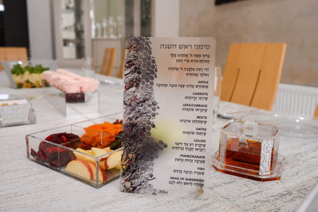 Very low stockRegular price €172Unit price /Unavailableשנה טובה - סדר אכילת הסימנים ואמירת יהי רצון לראש השנה Purple With Flower Cutout