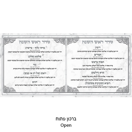Regular price €750Unit price /Unavailable שנה טובה - סדר אכילת הסימנים ואמירת יהי רצון לראש השנה Silver Metallic 2 fold